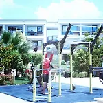De strandfaciliteiten van Apolonia Resort bevatten zonnestoelen en parasols. Er is een wellnesscentrum met een breed scala aan sportenfaciliteiten.